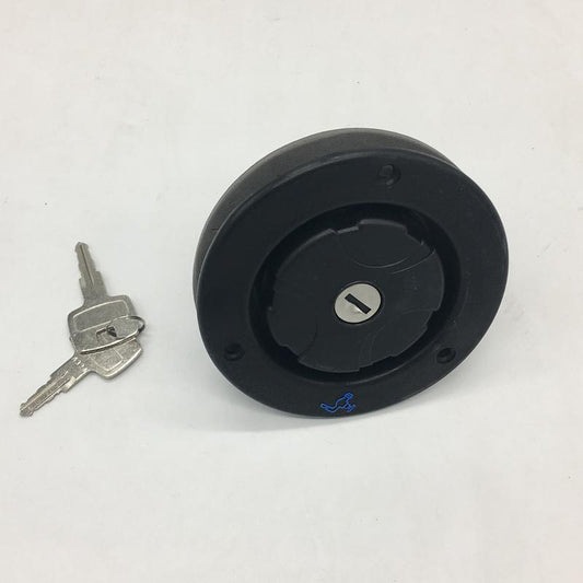 Water neck filler with springloaded cap and key