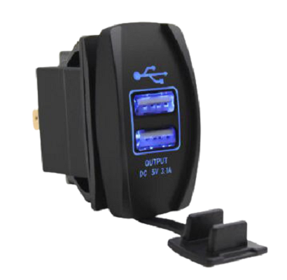 3.1A (1amp top and 2.1amp bottom) dual USB socket charger - blue LED